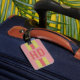 Soft red & yellow striped Shadow Monogram initials Bagagebricka