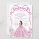 EDITABLE Soft Rosa Bow Princess Silver Quinceañera bjudan Elegant Soft Rosa Blommigt Princess Dacks Quinceañera Girl Birthday Inbjudan Krona Quince Anos, 15:e Silvret