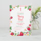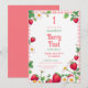 En söt och lekfull design med en rosa gingham gräns dekorerad med vibrerande jordgubbar, ömtåliga daisy och lush grönt löv. Den heliga gårdshuset estetisk och färsk frukt inslag skapar en varm och inbjudande blick, perfekt för att fira en flicka 1:a födelsedag. Kombinationen av blommigt- och bäraccenter ger en vismisk och nostalgisk charm.