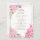 Soft Rosa ros och Guld Blommigt Quinceanera Inbjudningar