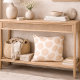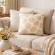 Earth-toned graphic design in layered sand, beige, and soft clay hues. Rounded, irregular shapes form a repeating geometric pattern with a printed tactile look. Ideal for neutral living rooms, reading chairs, or bedroom accents that need gentle pattern and balanced color.