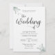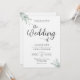 Chicens bröllopsinbjudan har en bukett med vattenfärg eucalyptus greenery och en elegant sofistikerad uppsättning typsnitt.