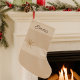 This neutral Christmas stocking features alternating soft beige and ivory bands with a taupe asterisk accent near the center and a brown name detail across the top. Its warm layered palette suits modern mantle styling and blends beautifully with serene holiday décor themes.