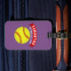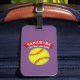 Slått ett springa med Softball All-Star Luggage Tag designad av Enchantthy Design Company. Den här teaterbagagetaggen har en mjuk boll där du kan välja namn på en röd banderoll med ord "softball all-star" under. Den ger en roligt för idrottsmannen eller sportfantasten i ditt liv. Anpassa om du vill välja bakgrund färg.