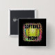 Softball Mamma-gult-programkula på en snurrande blå, rosa- och grönt-färgad och leopard-tryckbakgrund.