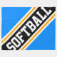 Den här sportsliga designen har en atletisk SOFTBALL-text inuti markerad diagonal svartvit, vit och guldfärgad tävla rand i gult mot ljusblå bakgrund. Den första och sista brev av ord-mjukvaran springa utanför kant med en dynamisk banderoffekt.