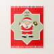 Kreativt softboll julpussel med Mrs Claus iförd softbollhandske som fångar en boll.