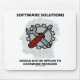 Har du stött på situationer där en software har tillämpats på ett maskinvaruproblem? Verkliga globala katastrofer kan inträffa om man har ett software ingenjör-tänkesätt när det som behövs är ett mekaniskt ingenjör- eller byggnadsperspektiv. Låt din kom i våtpsyket leva med den här munsspetsen som innehåller verktyg över en växel som lagts ovanpå en silhuett som fyllts med software och följande råd från ljud: "Software Solutions bör inte appliceras på maskinvaruproblem".