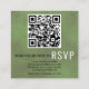 Kortet OSA grönt nedfläckad QR online bröllop. Gästerna kan använda detta kort till onlinens OSA med hjälp av QR-koden.