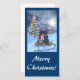 Ett ungt barn i en ljus rosa hatt och scarf och hennes hund knullar ihop på en månbelyst vinternatt och tittar på den magiska julscenen framför dem. I bakgrunden står en snö täckt stuga och ett Julgran som tänds med ljus. Kan tomten vara långt borta?