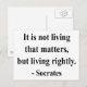"Det är inte liv som räknas, utan att leva som det ska" - Sokrates.