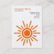 En visitkortsmall med en Sol-symbol. Företag namn, affärstyp och adress på framsidan med namn, arbetsnamn, telefoni, webben och e-post adress på baksidan, med samma layout.
