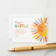 Solsken baby shower inklusionskort med en strålande, glad sol med ett förtjusande ansikte och en "blöja lotteri"-mall.