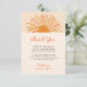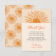 Modern trendig bohemisk stil "här kommer sonen" pojke baby shower kräm tackkort med meddelandemall med en uppgående sol med ett litet hjärta och ett retro-manus.