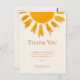 Detta enkla tack-kort för baby shower är dekorerat med en gul akvarellsol och enkel typografi på en mjuk krämfärgad bakgrund.