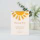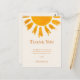 Detta enkla tackkort för baby shower är dekorerat med en gul akvarellsol och enkel typografi på en mjuk krämfärgad bakgrund.