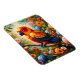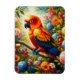 Sol Conure Parrot (flexibel magnet) med en oljemålning av en Sol Conure Parrot omgiven av färgstarka blommor. Den här levande och detaljerade designen ger ditt hem konstnärlig elegans och naturskönhet.