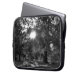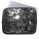 Sol som lyfter genom träd vid Bute Park Cardiff i Wales. En vass och dynamiskt tonsvart och vit bild