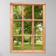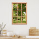 Solsken och solskugga bland Träd i parken Denna poster som ser ut som ett fönster visar en bild av en grönt. Det läskiga träd-erbjudandet skade från sommarsolsken och äppla gräset med solljus och skugga. En rastfull syn att titta ut på, inramad av ett träfönster.