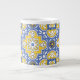 Harmoniseringsmönstret Sol & Himmel brinner med Medelhavsvibrationen och blandar strålande gult med coola i ett glatt, symmetriskt mönster. Genom blommigt och prydnadsmotiv i svepande kurvor och scrollsar framhäver detta mönster traditionella portugisiska azulejos och sol-härdade sydeuropeiska keramik. Ett perfekt för plattor, underlägg, mugg eller någon annan hemadress, detta biet ger en varm men raffinerad energi till både moderna och strålande dekormiljöer