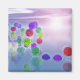 Ett 3D-sjölandskap i science fiction skapat i Vue och skilde en ljus rosa och långrandig solnedgång bakom en struktur med flera färgader som gigantiska atomer som spirar in i ett blek blåhav.