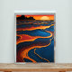 Den här abstrakten har ett dynamiskt samspel mellan orange, blått och svart nyans, vilket framkallar känslan av ett sol-genomdränkt landskap. Det snabbt växande mönster och de ekologiska formerna skapar en känsla av djup och rörelse och uppmanar tittaren att utforska sina invecklade förhållanden. Perfekt för att lägga till en liten bit modern konst i ditt hem eller på kontoret.
