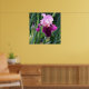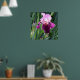 Söt nedsmutsade Rosa Iris-blommor i fullt och blomknoppar i bakgrunden med långa gröntar och löv. Fin blommigt poster hemma eller på kontoret. Originalfotografi © 2009 TamiraZDesigns.