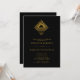 Sol Ocean Logotyp QR-kod RSVP Guld på Svart Bröllopsinbjudan... Framsidan på vår guld på svart bröllopsinbjudan visar en falsk metallisk guld sol på vattenlogotyp, som representerar en bröllopsdestination där solen går upp eller ner över en ocean. Strax nedanför finns din personliga inbjudan text i gyllene serif och sans serif typografi på en elegant svart bakgrund. Baksidan av inbjudan visar din bröllopswebbplats QR-kod samt webbadressen så att dina gäster enkelt kan svara online och se alla detaljer som normalt skickas i ett bröllopspaket. Exempel QR-koden och all exempeltext (förutom kalligrafielementen) kan enkelt revideras med din egen information i personaliseringsmallen.