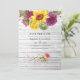 Rustic boho solblommor och dahlias bröllopsinbjudan i burgundys och sol färg. Perfekt för varje tema eller trädgårdsbröllop.