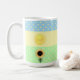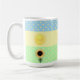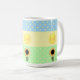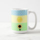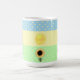 Vacker mugg med sol och prickar på blå, gula och gröna ränder.