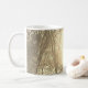 Sol skiner på morgonen mellan träd, Lycklig-morgonkaffet mugg. Modern och elegant, kom till naturen.