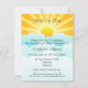 För högskoleexamen eller högskoleexamen i party. Har ett ljust sol med vita sol-strålar stigning ut från himmel med lagrar av blå, ljusblå och vita moln nedanför, på guld. En modern soluppsdesign. Symboliserar en lycklig-dag, firande, och en ny början som är perfekt för alla nya student. Fyll bara i din information efter behov. En extra-rad har angetts för all information. Anpassa eller ta bort någon på baksidan.