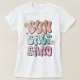 En söt Groovy stil färgfull typografi som säger för sommarsemestern: Sol, salt, sand.