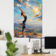 En kvinna står vid ett tillfälle av balans och når mot det stigning sol. Den här vibrerande målningen fångar harmonin mellan kropp, andetag och natur genom uttryckliga penseldrag och strålande färg. Det roterande himmel och det glödande ljuset framkallar en känsla av att andlig vaknar upp, fred och närvaro. Perfekt för älskare av tänkande levande och modern imponerande konst, biet utstrålar energi, tydlighet och anslutning - en visuell mantra för styrka och trygghet.
