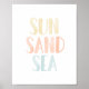 Sol Sand Sjö Akvarell Strand Barnkammardekor Poster