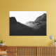 Ett svart och vitt foto av sol som glider över bergen i Trenta-dalen, Slovenien.