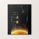 En jigsw av den sol- systemvisningen alla planet och dvärgplanet som ska skalas och i det korrekt, beställer från solen. Inkluderar formatet, samlas, och Orbitalperioden av varje anmärker. Har också en skalaa grafisk visning orbitalavståndet av varje att anmärka från solen. Bakgrund grafisk NASA/JPL.