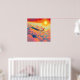 Bild av ett passagerarflygplan i jet som flyger ovanför molnen med ett blixtande sol i bakgrunden. Ett flygplan seglar genom en himmel-ablaze med solnedgångens eller soluppgångens varma nyanser - orangar, vibrerande och mjuka nyp, kula med djupa blues och lila i molnen. Den ljusa sol lyser intensivt och kastar ett gyllene ljus på flygplanet när det flyger genom denna storslagna visning. Den här teckningen fångar upplivningen av flyget och den fantastiska skönhet som finns högt över världen. Ett vackert och upplyftande biet som inbjudan känner frihet och möjligheter i ditt hem. Biet kan anpassas, skrivas ut och hämtas.
