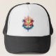 Solar anchor in a tropical paradise. Vibrant design with prominent anchor and cross, surrounded by palm trees, radiant sun and island scenery; neon palette and intense sunset for a bold and tropical look.