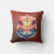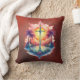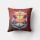 Solar anchor in a tropical paradise. Vibrant design with prominent anchor and cross, surrounded by palm trees, radiant sun and island scenery; neon palette and intense sunset for a bold and tropical look.