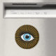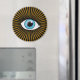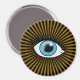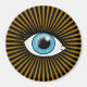 Solar Blue Öga, som mäter öga illustration av blått öga med mörk guldstrålar från sol. mytologi en aspekt av Sol framställs som öga mot bakgrund av solstrålar som strålar runt omkring. Eoterisk paganwickan från tredje öga, ny ålderssymbol för medvetandesymbolen psyche och medvetande eller medvetande om ondska med en symbol för skydd mot öga eller öga eller vatten symbol för vatten