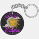 Rund svart nyckelkedja med vintage sol och måne för att fira 2024 års Solar-elipse