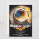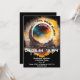 Coola, modern, sci-fi celestial vattencolor överskuggar en svart bakgrund. Vågräts inbjudan till en solfångargrupp överskuggas. Anpassa enkelt med din information. Perfekt för rymd- och astronomientusiaster. Fira de kommande 2025 partiella solnedgången i stil.
