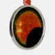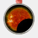 Mörkens skugga över kor i måne framför sol under en solförmörkning som fångas i rymden och som förstärks i denna bild.