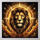 Ett andningsmönster och symbolisk teckning med en stor lejon med en strålande gyllene mane omgiven av celestial light. Den lejona piercingens blickar präglas av styrka, förtroende och visdom, medan den ljusenergi som omger den symboliserar gudomlig makt och kunglighet. biet flyter bland gyllene moln och representerar ledarskap, mod och själens eviga låga.
