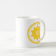 Solar Plexus Chakra Coffee Mugg. Vitt kaffe mugg med en gult solcellplexus chakra-meditation ny ålderssymboldesign för yoga. Matchning av andra chakra-utformningar finns. Chakra design av ©Maggie B. Design.