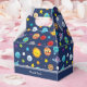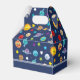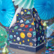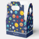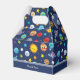 Celebrate the solar system with this cheerful outer space themed birthday party favor box. Box has a happy sun, happy planets (Mercury, Venus, Earth, Mars, Jupiter, Saturn, Uranus, and Neptune), as well as happy dwarf planet Pluto, asteroids, and stars. The box has the text Thank You.