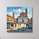 Badad i varmt italienskt ljus fångar denna bolognesiska dukkonst storheten hos en historisk piazza levande med vandrande figurer, vintagebilar och de statliga fasaderna på gamla kyrkor. Uttrycksfullt penselarbete och lysande himmelstön ger scenen en tidlös, romantisk atmosfär. Perfekt för hotell, gästrum, reseinspirerade interiörer eller elegant heminredning ger den europeisk charm, kulturell rikedom och klassisk stadsatmosfär till vilken vägg som helst.