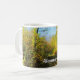 Här är en höst mugg som presenterar en lysande skogsscen på en solig eftermiddag, med tydliga blå himmel overhead och träd i en autumnal blandning av gult, grönt och guldbrunt löv. Anpassa den med ett namn eller ett uttryck.