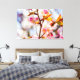 En närbild av en solbelyst klunga färska, rosa sakura-blommor och knoppar på en trädgren. Den lila, blå, vita, ljusrosa bakgrunden av molnig himmel och körsbärsblommor. En extra stor digital målning från ett fotografi. Fantastisk blomsterduk för att dekorera hemmet eller som gåva till bröllop, födelsedagar, baby shower eller andra evenemang. Du kan överföra designen till en mängd olika produkter till överkomliga priser, inklusive canvastryck, affisch, akryl, metall, träväggkonst, triptyk, tapet, plakett med staffli, fotoblock, pussel, vykort, platta och magnetiska kort, magnet, väggklocka, kastkudde, filt, keramiska plattor, minnesskrin, prydnadsfat, trivets, brickor av alla slag, spelkort. Välj bara produkt från det rullbara alternativet "Överför design till en produkt". Denna design kan anpassas. Använd bara knappen " Anpassa" eller "Redigera design" (beroende på fallet) i blå färg, eller länken "Detaljer" --> "Klicka för att anpassa ytterligare". Du kommer till sidan "Designverktyg" där du enkelt kan använda alternativet "FYLL/FIT" för att JUSTERA DESIGNEN TILL STORLEK OCH FORM